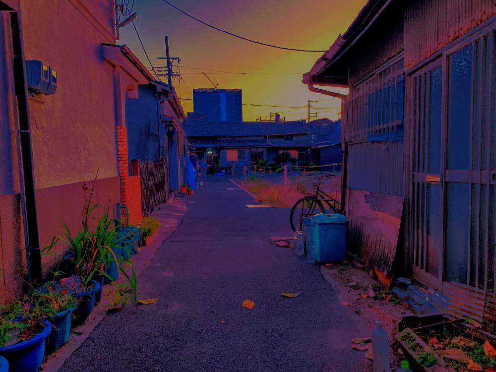 商店街のアーケードを抜けて、横道は黄昏