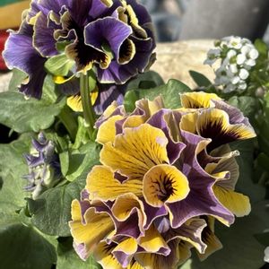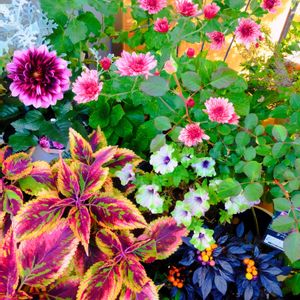3年目のスプレーマムがやっと開いて来ました🌼 ダリアとペチュニアアマゾナス、栄養系コリウスと共演が出来ました🌿