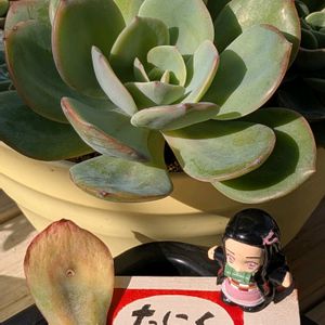 こんにちは😊 🏷るる かまぼこ板で繋がる輪 🏷毎月13日と14日は葉挿しの日 🏷石の日🏷ちょこんとピータン 🏷金曜日の蕾たち 参加しまーす✨ ①白鳳さん❣️もぎった葉っぱから双頭の葉挿しっ子誕生👶👶 後ろのお母さんも大きくなってるよ~ 💕🥰💕 ②マディバさん❣️左側の子が、夏にポロポロ葉っぱ落としちゃった💦 せっかく綺麗な姿だったのに〜💧でも、しっかり葉挿しっ子が出て来たよ〜✨(*^^*) 頭も✂️した方がいいかしら❓ 葉挿し応援隊の禰豆子ちゃんとパシャリ📸 ③ミロッティーさん❣️初めての蕾かなぁ❓ オジゾータン&イシコロタンが見守ってるよ〜💖