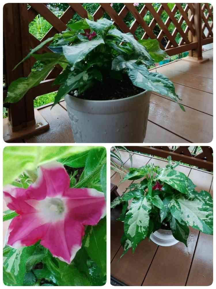 私も初めて植えたのですが、GSで支柱いらないから寄せ植えみたいにしてあるpicもありました。サンスマイルは葉が斑入りで綺麗です。🌿