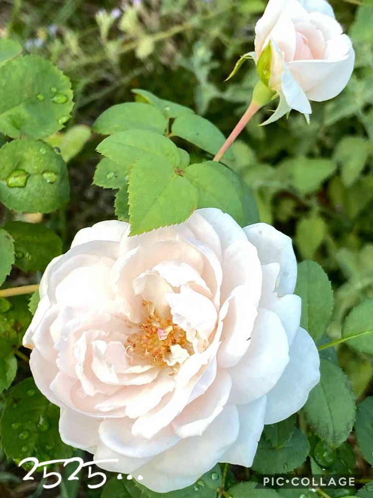 真っ白なばら、夕陽を浴びて、薄いピンクに、染まってます。