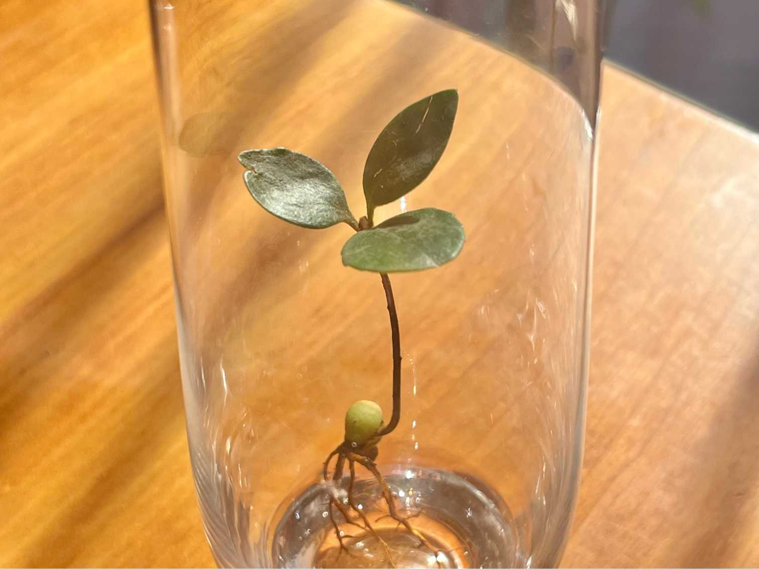 庭の紫木蓮とモチノキの木の下で 小さな実から発芽している芽🌱を発見👀 なんの実だろう…🧐 鳥が運んできたのかな〜🦜