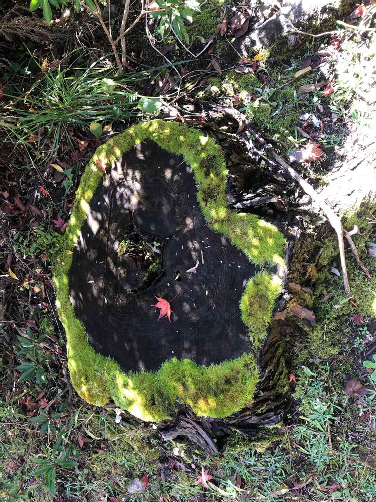 苔で、縁取った切株の器に、🍁