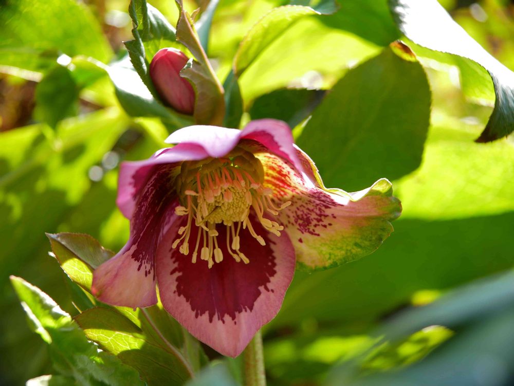 クリスマスローズって色も柄も多様ですね、このピンクちゃん、花びらの一部が緑のままです、葉っぱになろうか花びらになろうか迷ってどっちつかずになった感が否めない( ̄▽ ̄;)