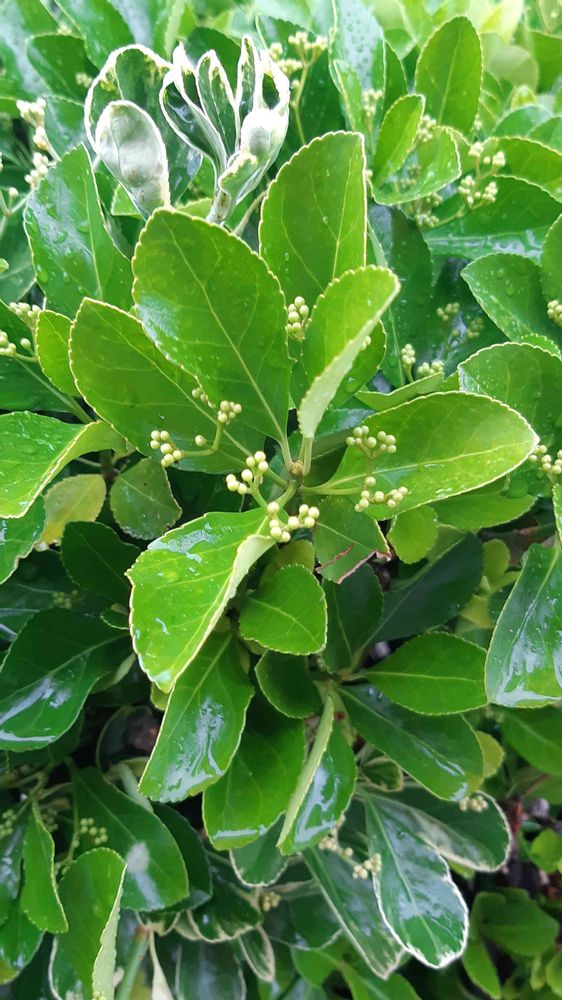 雨に打たれながら、可愛らしい蕾がピンとしていました。