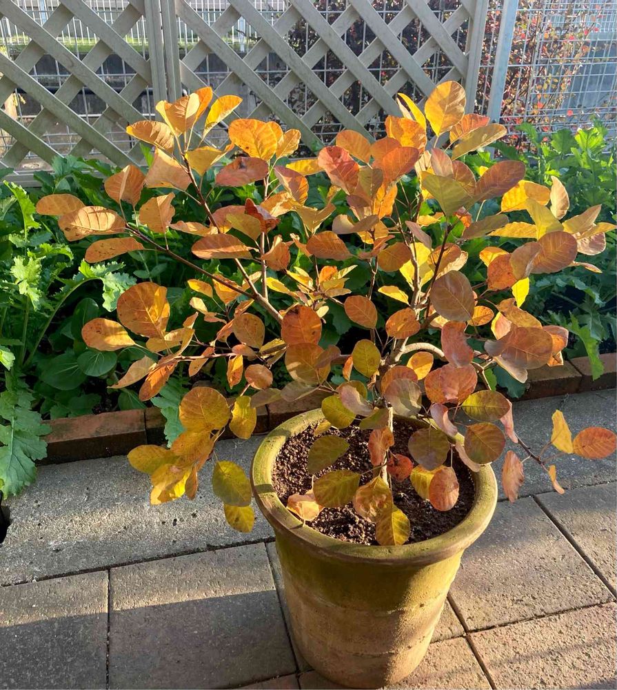 苗で買って3年目のスモークツリー。ようやくシッカリとしてきたけど、今年はまだ、花はつきませんでした。でも、なんとビックリ、こんなに綺麗に紅葉しました🍁(๑˃̵ᴗ˂̵)✨