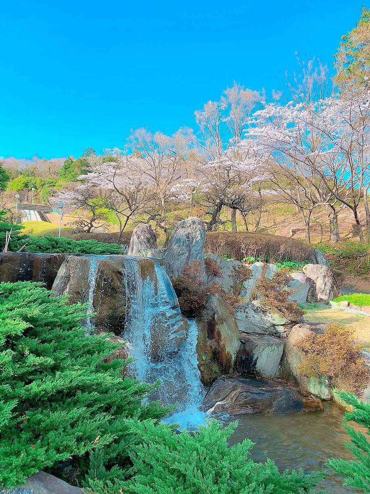 桜と🌸空の色💙滝の三拍子揃ったよ🆗