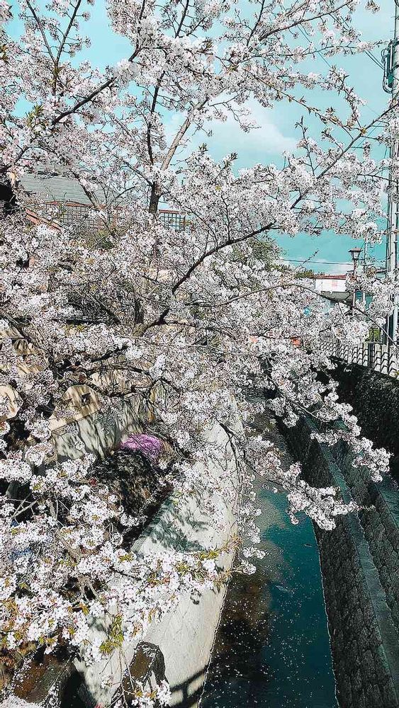 市内を流れる川と桜🌸