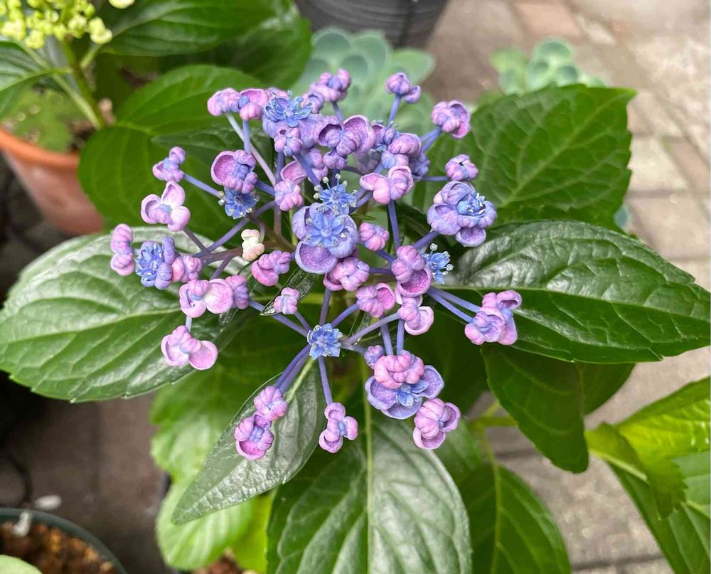 この色も綺麗なんだけど、来年はもっと青く咲いて欲しいので、青の肥料あげてみます💙