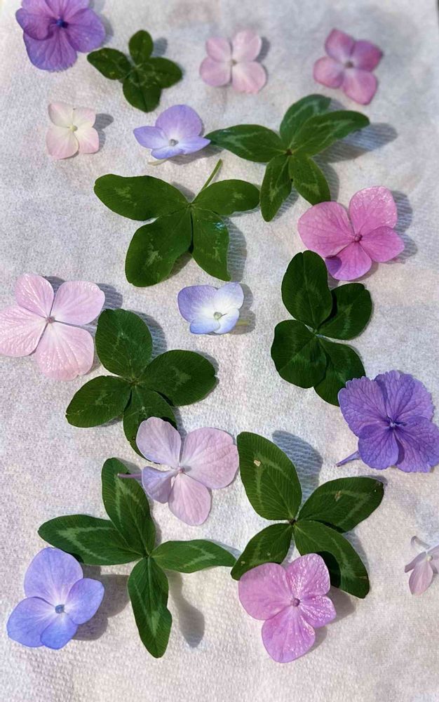 四つ葉と五つ葉とあじさい🍀🌸💜💕