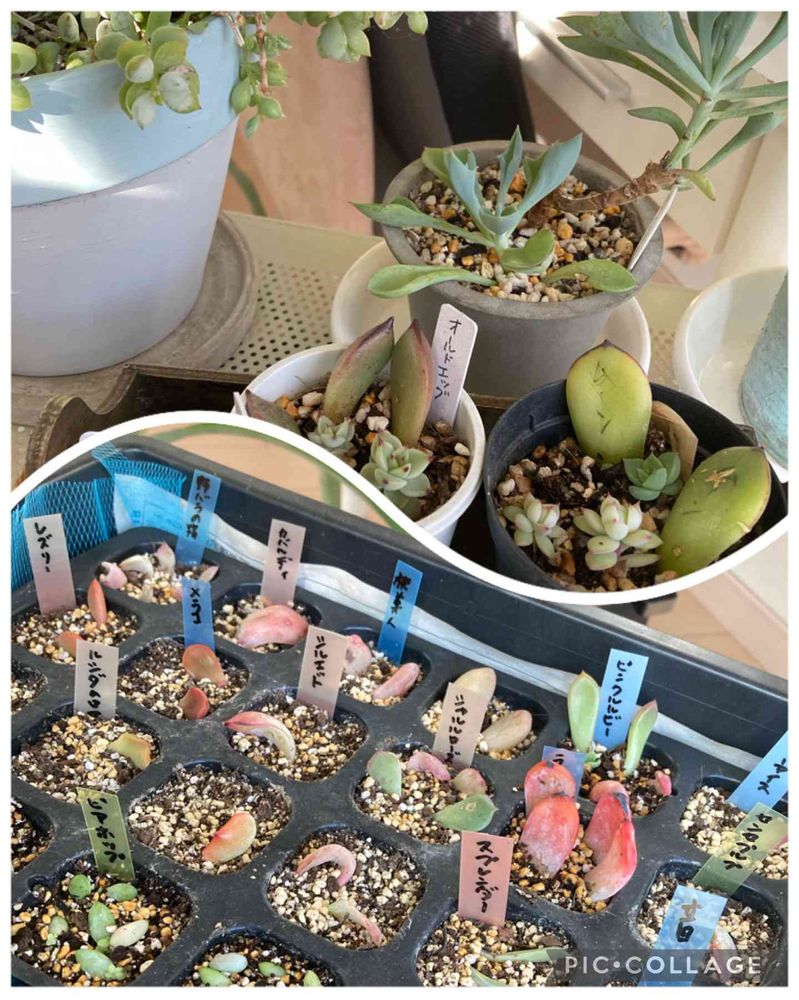 室内の窓辺でゆっくり成長してる葉挿しちゃん達