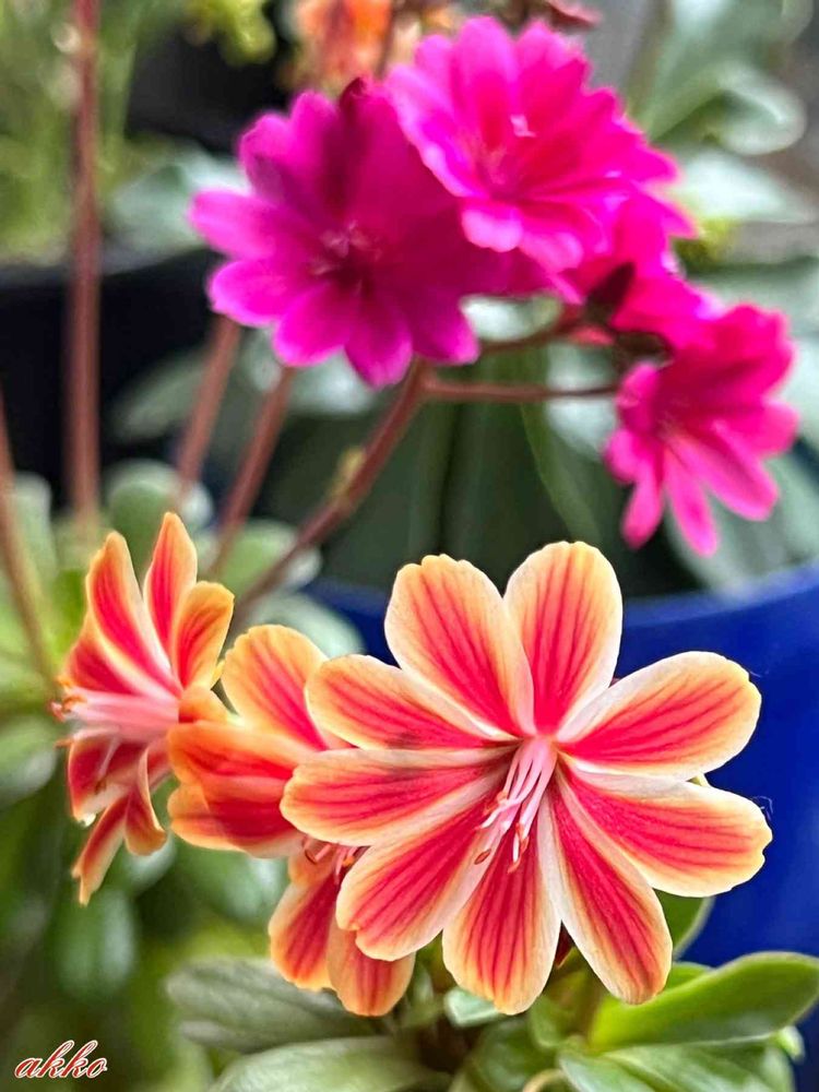 レウィシアの二色目の、オレンジぽい白い縁取りの花‼️