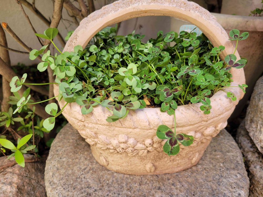 焼き物の鉢に2種を植え付けたらなんだか微妙に😢