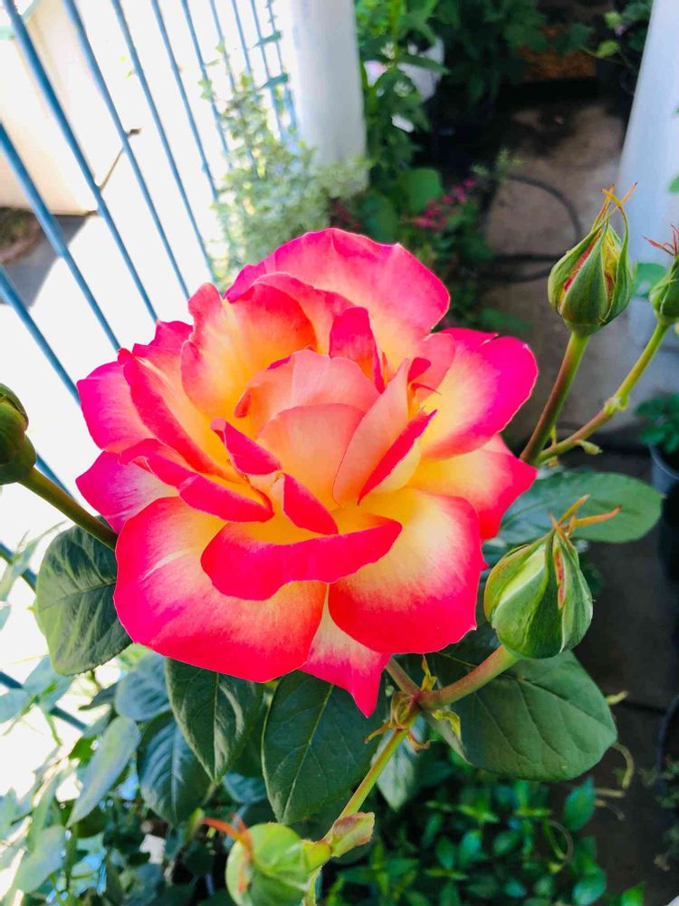 バルコニー/ベランダ,バラ 朝雲,バラ 鉢植えの投稿画像