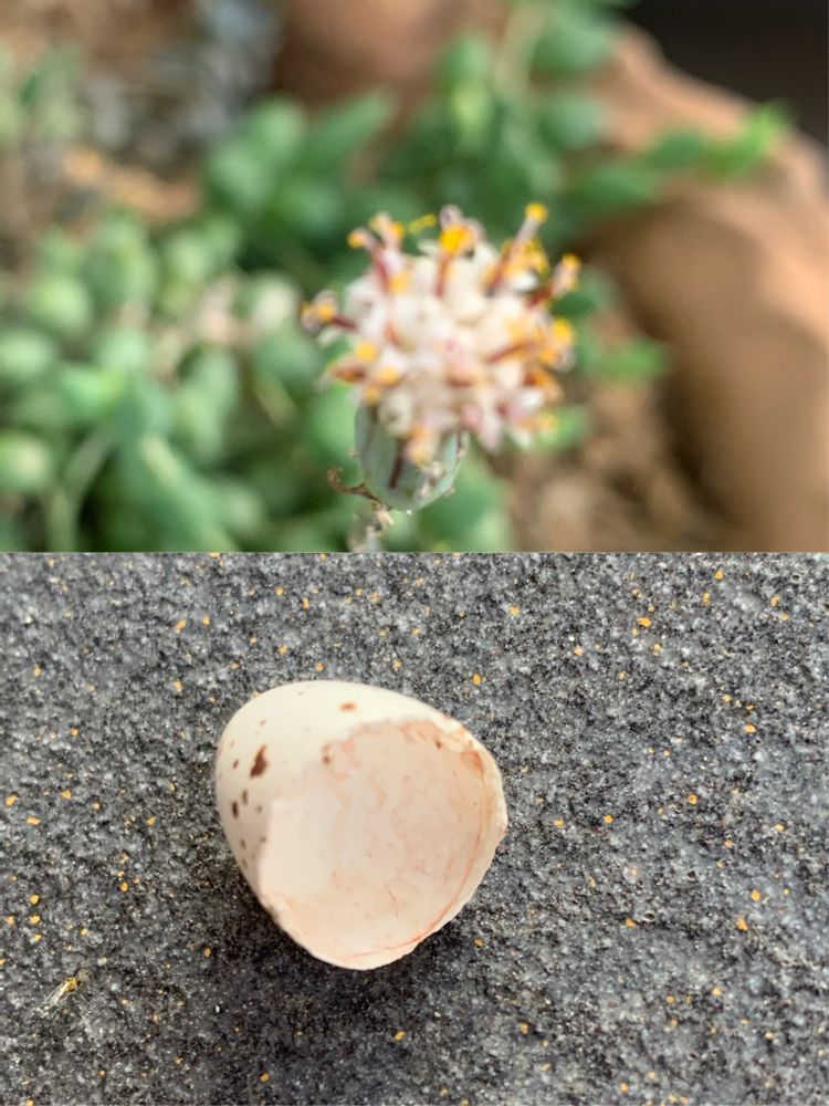 朝の多肉とつばめパトロールでピーチネックレスに花が咲いていたのと、つばめ、ちゃんと2週間で雛が孵化し、今年も一番最初に孵った雛の卵の殻を、人間が分かる場所に落として教えてくれます♪🐣2匹目以降の卵の殻はちゃんと親鳥が遠くに咥えて捨てに行くんですよ。賢いです。もう1週間もすれば可愛い雛の餌をねだる声が聞こえてくる事でしょう🐤とても楽しみです✨