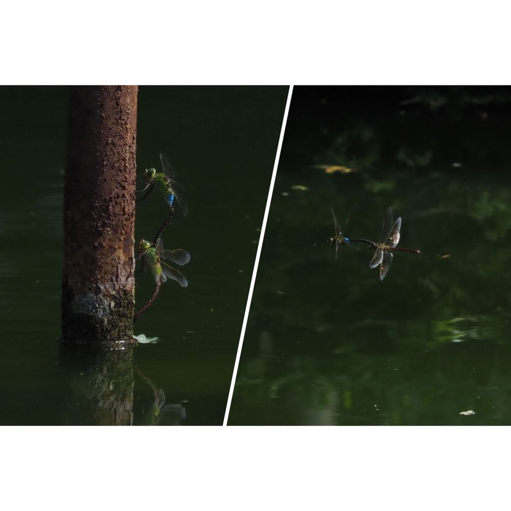 池の杭にはギンヤンマが連結産卵中!!