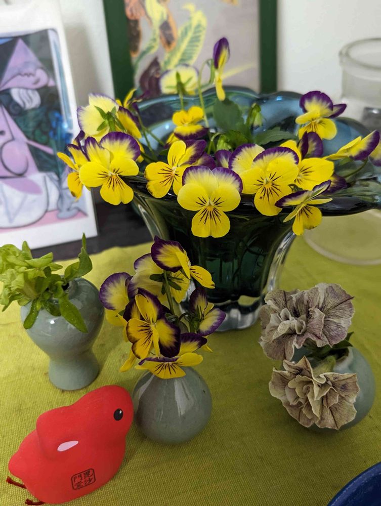 先週摘芯したビオラと夏の残りのペチュニアなので🌼💜🌼