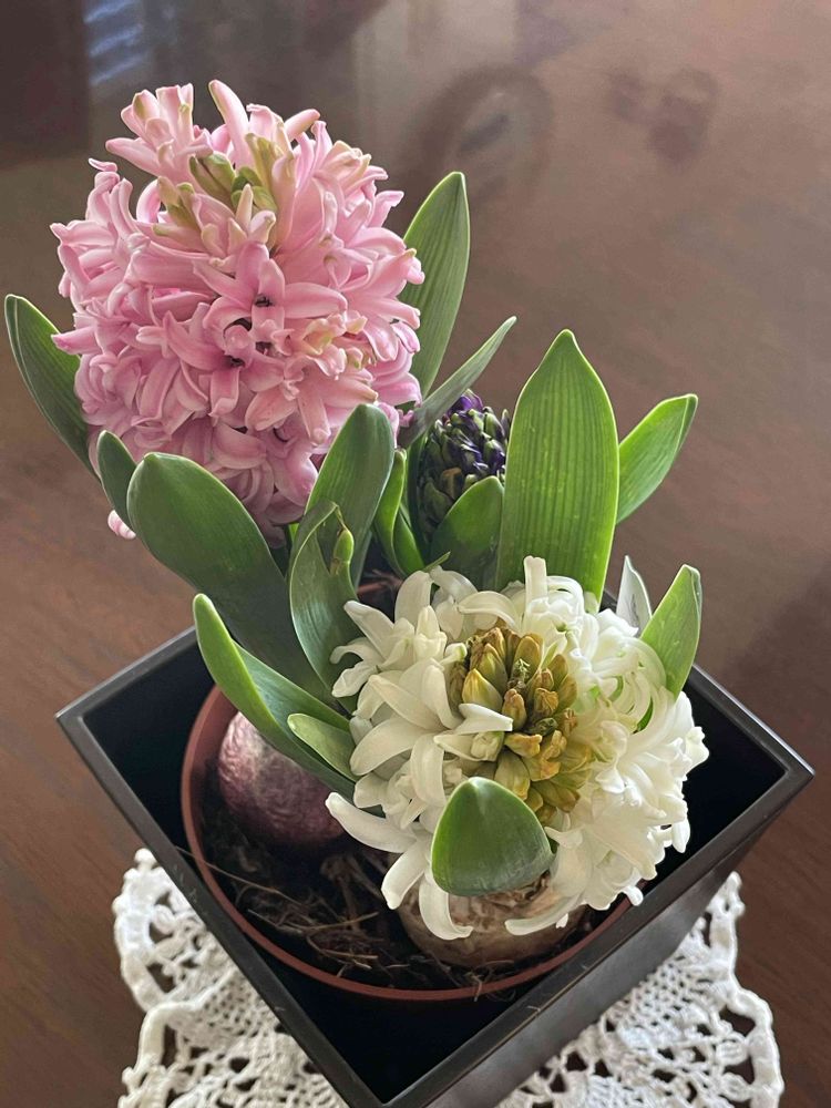 ヒヤシンスが綺麗に咲きましたね〜🩷🤍