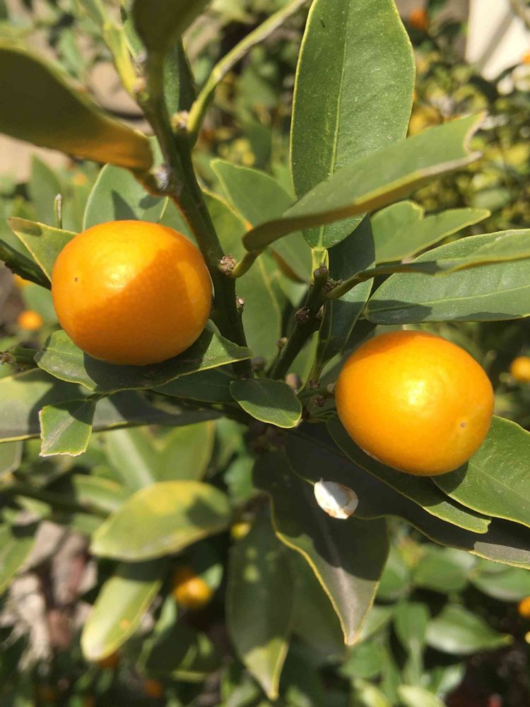 最寄りの駅から職場まで、心臓破りの坂を登りきったところにある古いマンションの裏口にあるキンカンの鉢植え🪴