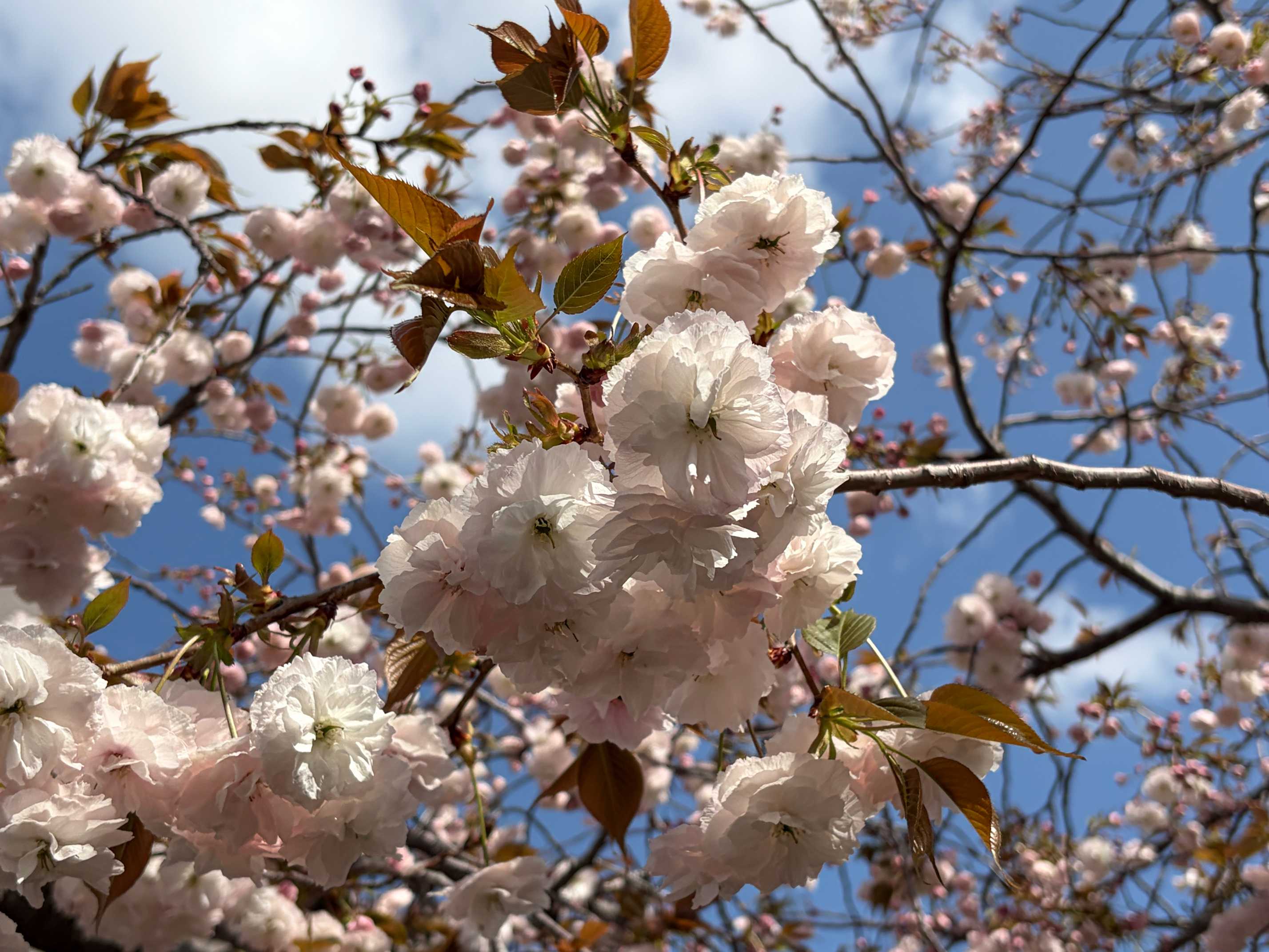 普賢象桜(薄紅色)が枝変わりした須磨浦普賢象桜(黄緑色)を観に行きました。 枝変わりがおきやすいのか、黄緑色の枝に混じって薄紅色のものがあり興味深かったです。