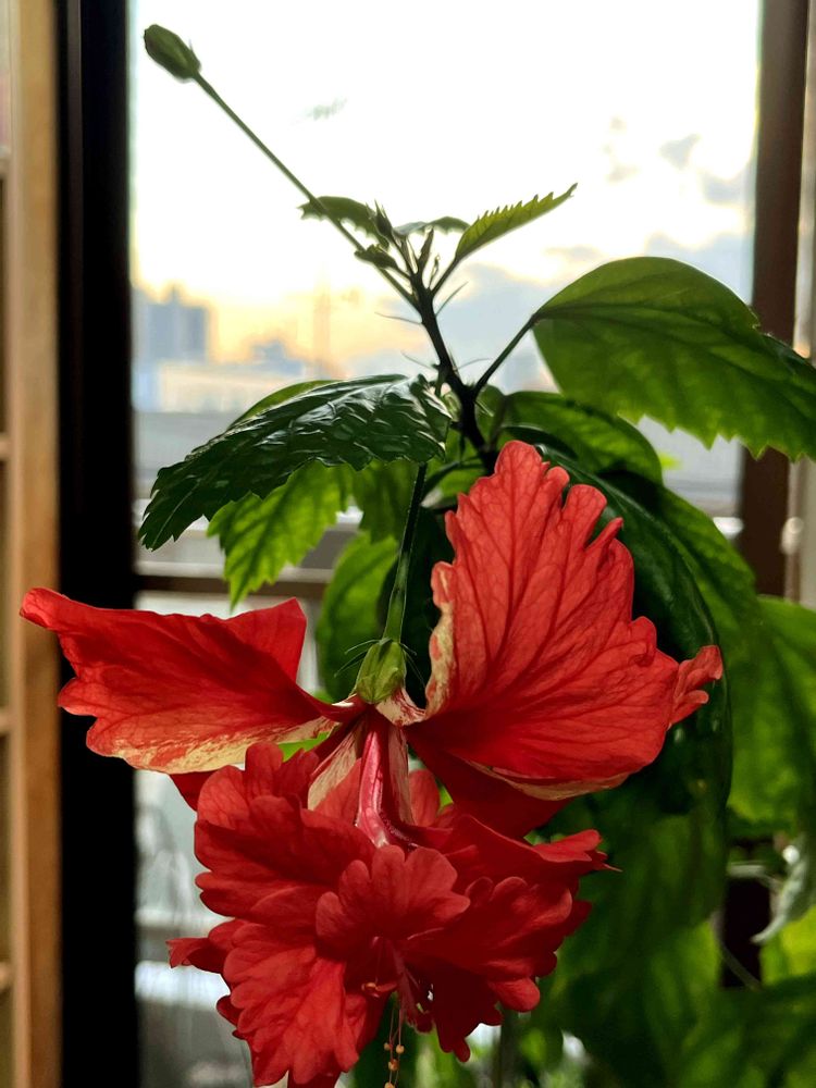 またまた咲いてくれました🌺 和室の窓際のハイビスカスさんです😍