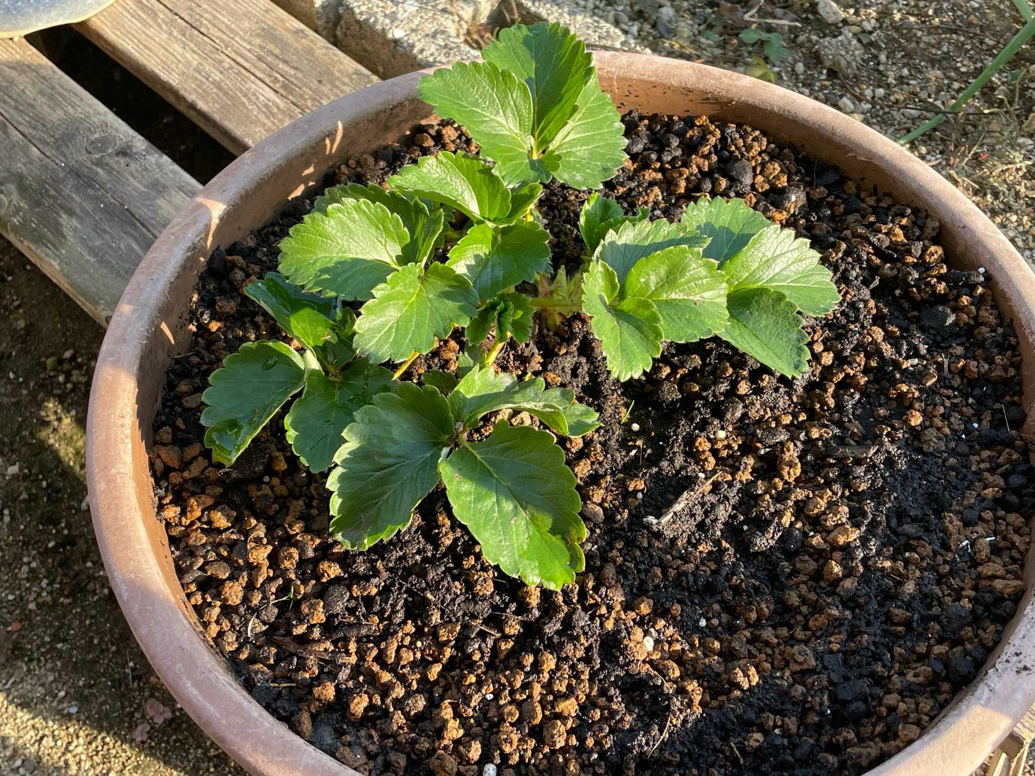 義父さんからイチゴ🍓ちゃんの苗をもらいました。実ができると嬉しいな。
