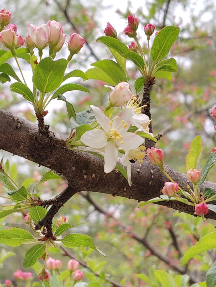 札幌では桜とズミ、コリンゴなどが同じ場所(近く)で咲いてます。住み場所は、何となく分かれているみたいですけれど。