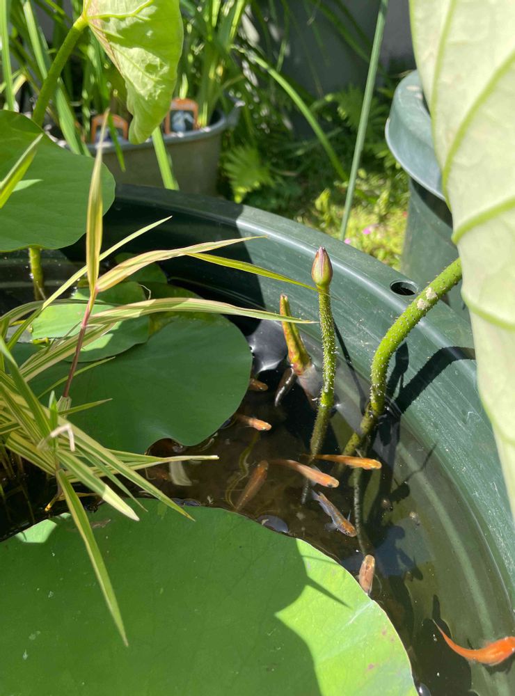 こんばんわ、今日見たら、古株の蓮が花芽が出てきました。最初だから、育つか?😉😂