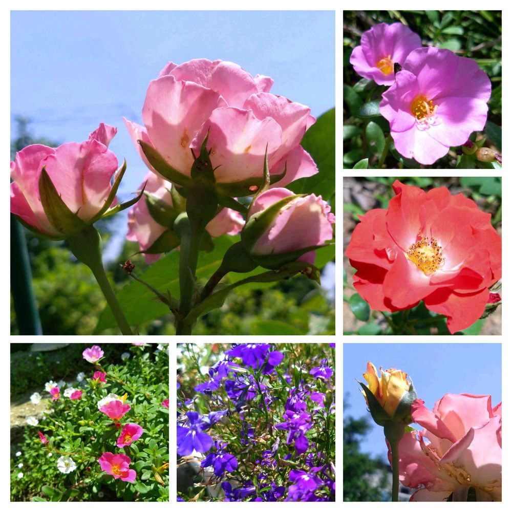 この暑さでも文句一つ言わず咲いている花々、バラとかジーニア、ポーチュラカ、トレニア、そしてサボテン🌵