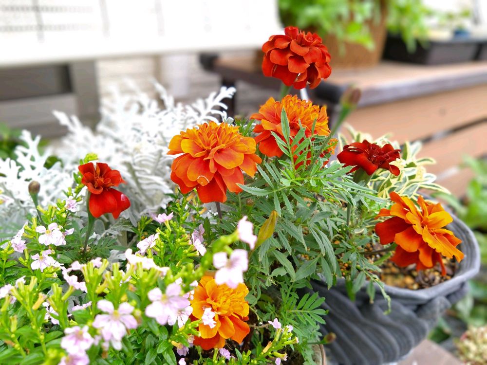 ❶先日お迎えした見切りちゃん50円のマリーゴールドがさいてきたー🧡❤