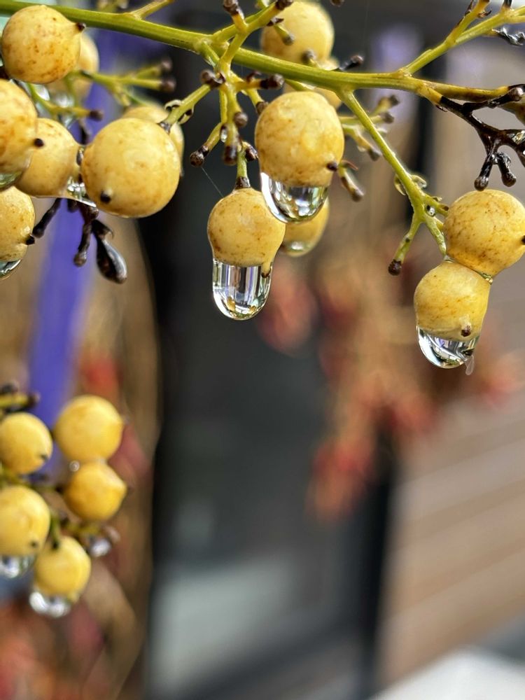 2⃣南天に雪解けの水滴が落ちそうで落ちない。キレイ✨✨✨