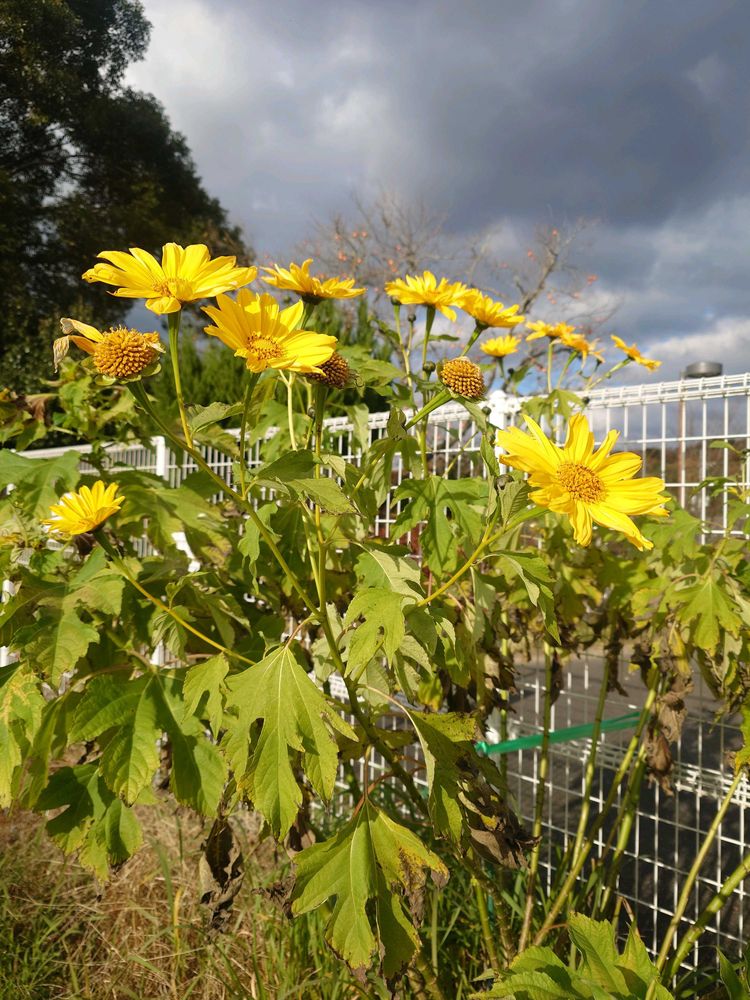 夏のお花🌼、ひまわり🌻と紅葉🍁のコラボ、なかなかです😆