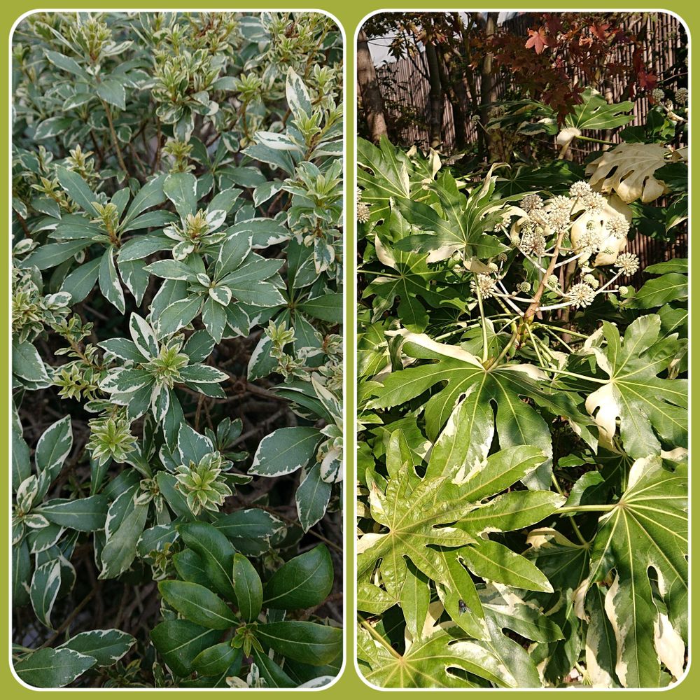斑入りトベラ、斑入りヤツデ、二人とも素敵ですねー✨✨✨✨\(^-^)/