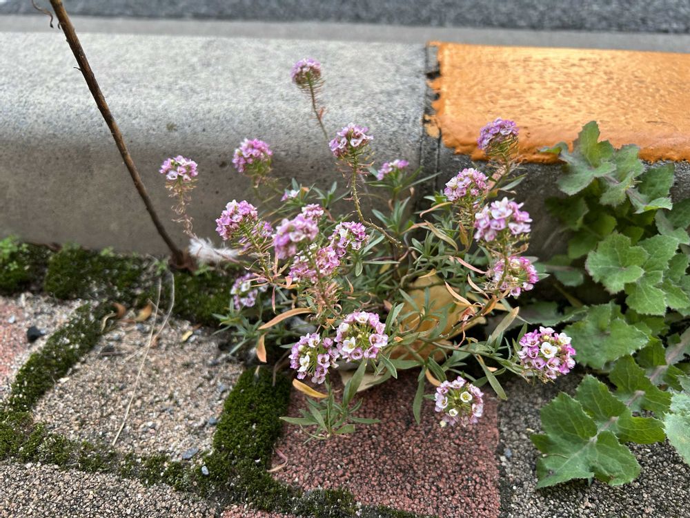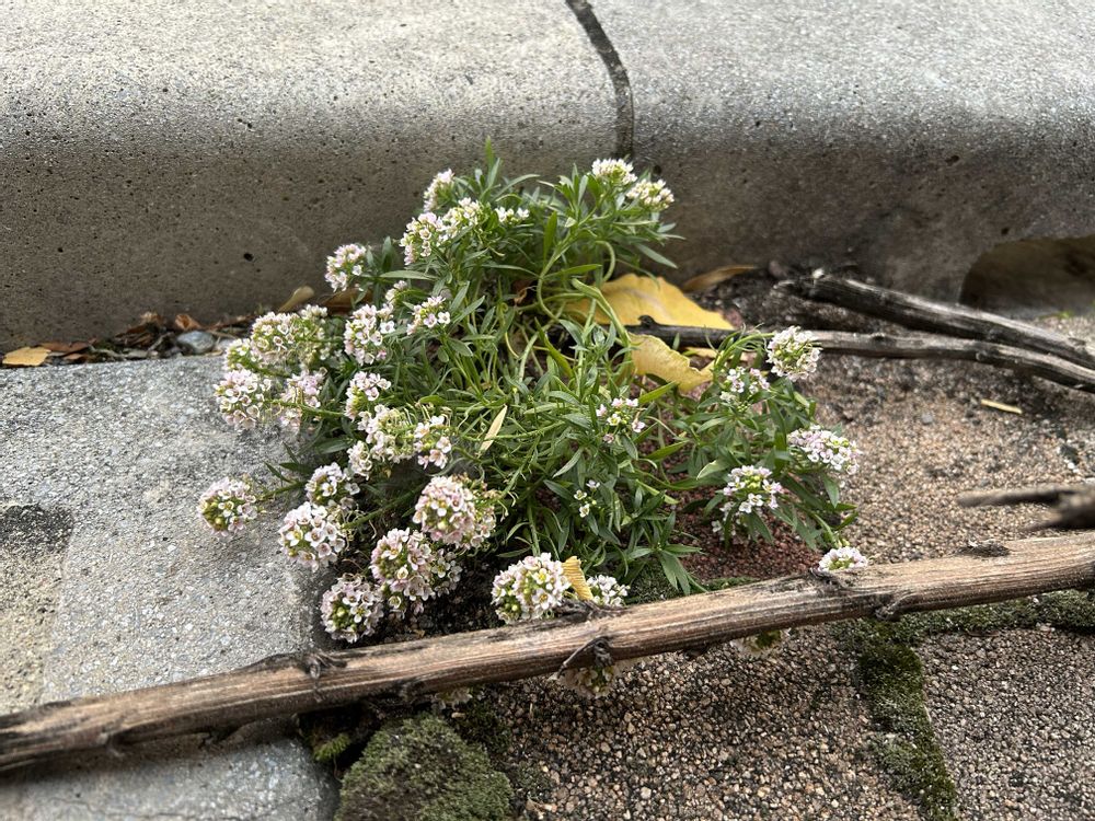 こんなところで…今はもうアリッサムのいない、目の前のマンションのオシャレ花壇から種が飛んだのかな?