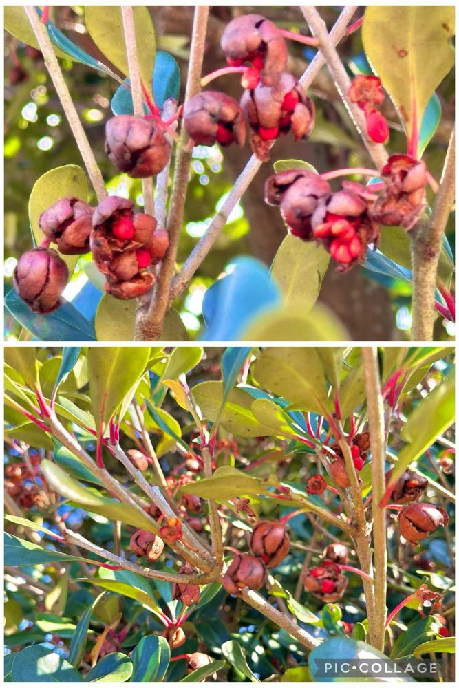 モッコクの木の実が、裂開して朱色の種子を覗かせています😍