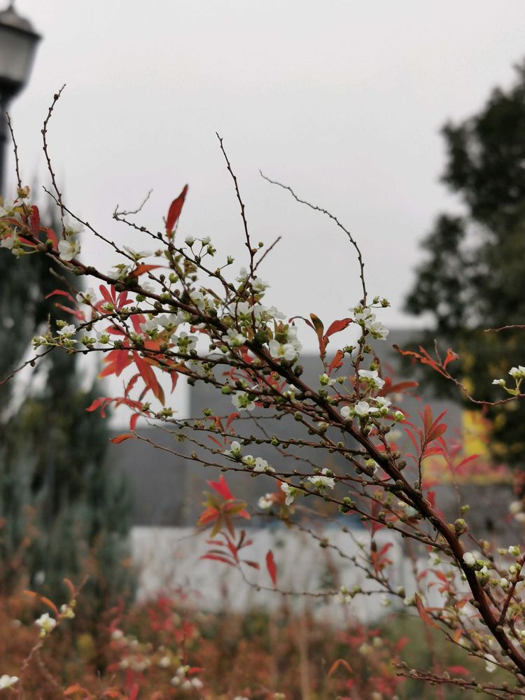 紅葉🍁した葉と、白いお花との