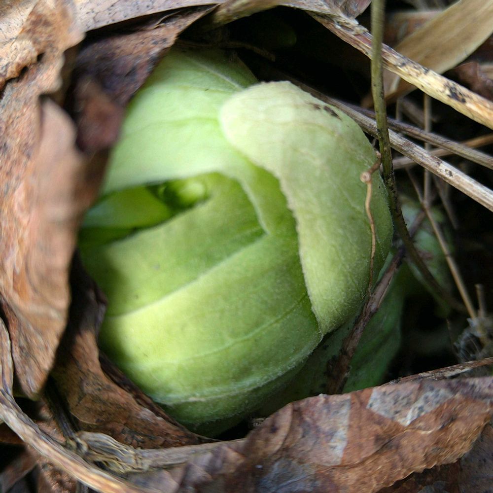 ゆりの木の根元周辺は大きな葉っぱに覆われ中々見えないので歩き回れると大きな枯れ葉を退かします…