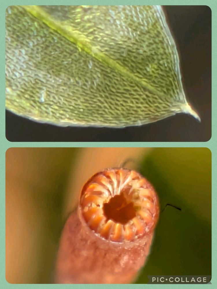 ④葉の先は尖って縁には2〜3列の細胞、蒴の帽子や蓋は取れて蒴歯が見えます
