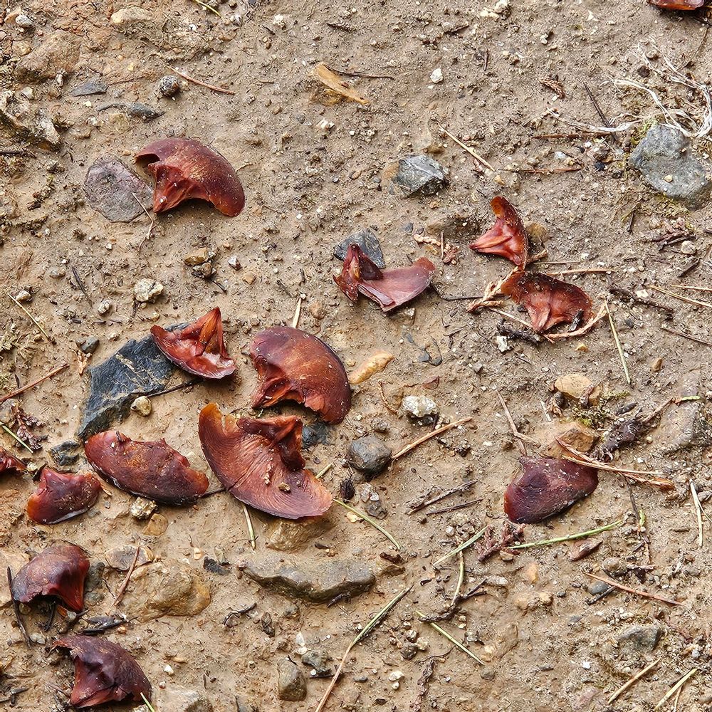 始まりは足元 何だ❓このキクラゲみたいなのは❓と少し靴で👟触ってみる…❓キクラゲではないのは分かるけど…木の皮かぁ〰👀あちこちに落ちている←この時はまだ拾わない😁