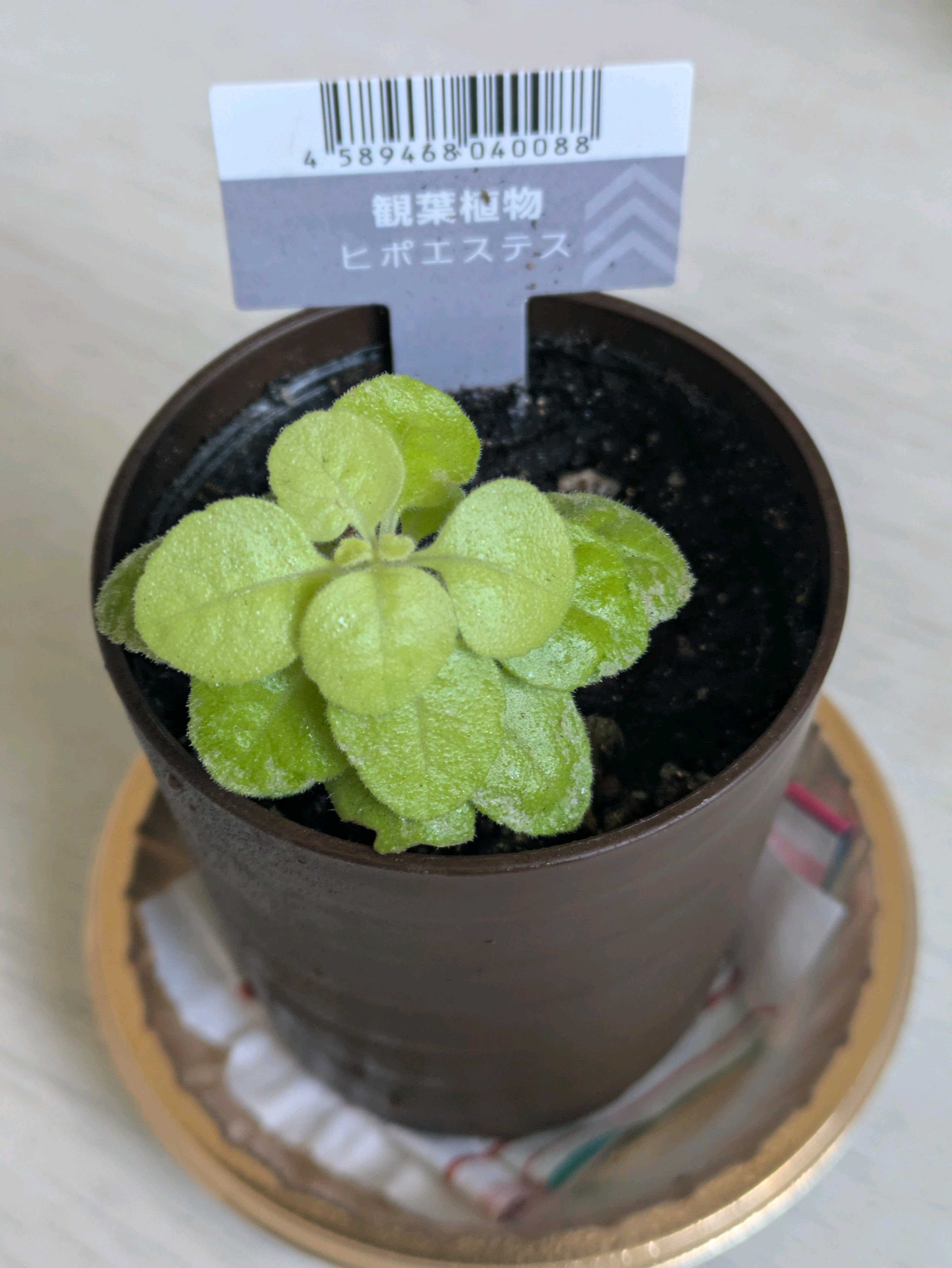 ダ◯ソーで見つけた植物です。ヒポエステスと札がついてますが絶対違うやろ!ということで育ててみます。予想はスウェーデンアイビー?