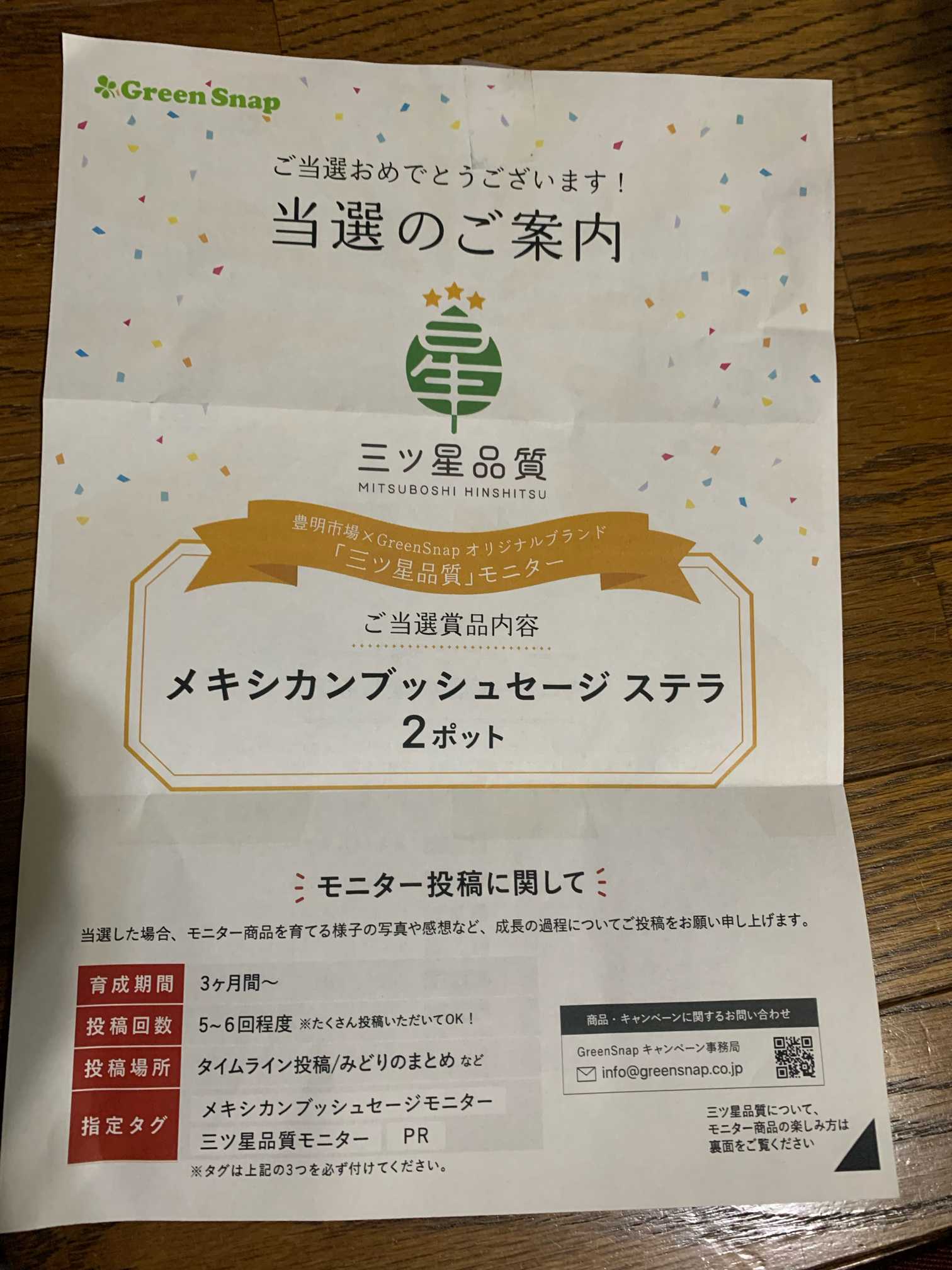 メキシカンブッシュセージ ステラ モニター当選しました。選んで頂きありがとうございます。