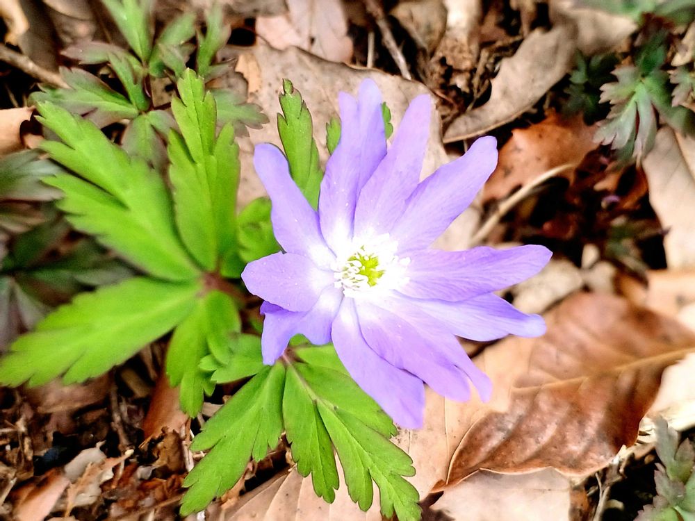 4、5日前にはまだ葉っぱも出て無かったのにキクザキイチゲ💜咲きはじめてましたよ
