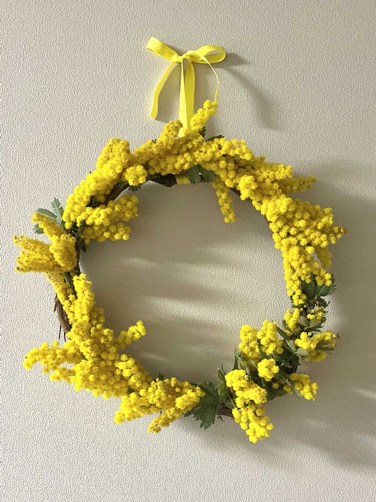 ミモザは育てられないけど、春のリースは毎年作りたいです❕