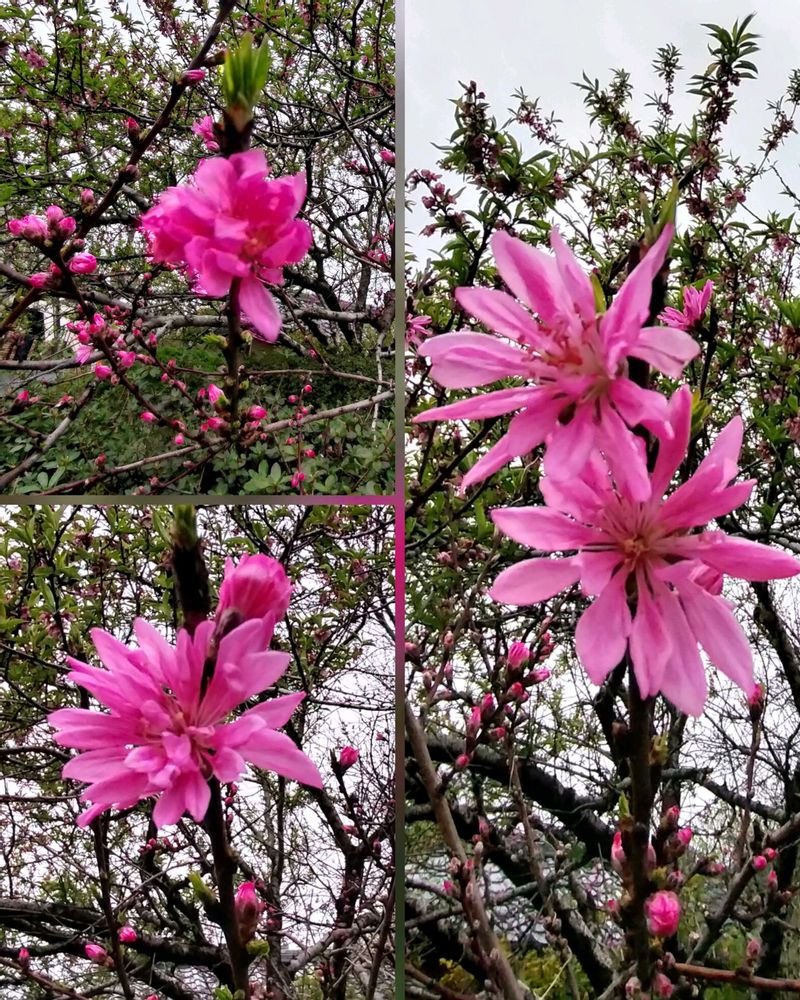 4️⃣オヒョウモモは終わりましたが隣に菊桃が並んでいて、コチラは咲き始めたところです🩷🩷🩷