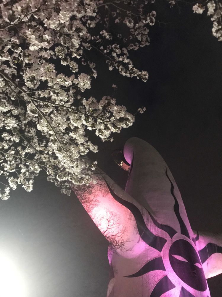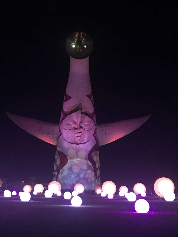 ⑤番外編 太陽の塔 の正面 「SAKURA EXPO 2025」バージョンのプロジェクションマッピング