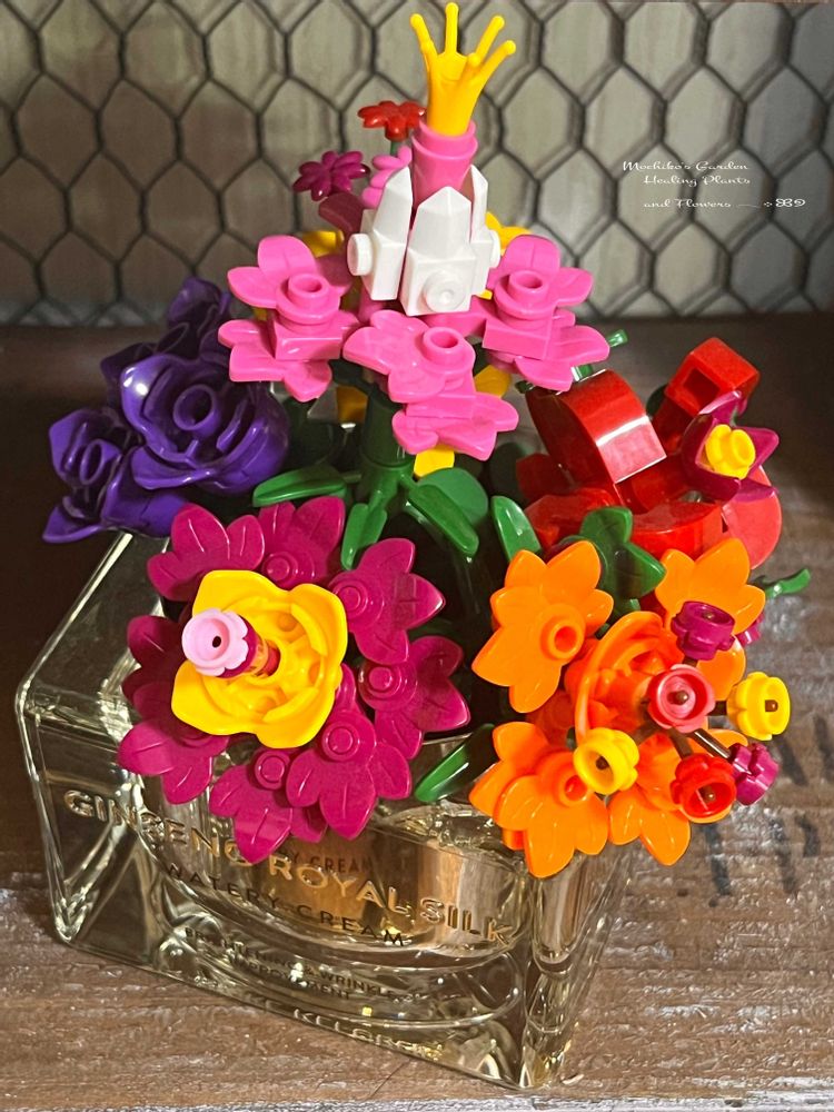 こういう感じの、もっとサイズの大きなレゴの花があるんだけど、そちらは値段も高いので手が出せないけど、こちらは一本100円だから、6種類揃えてみました💐