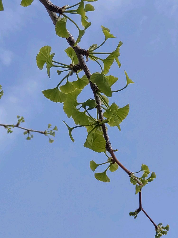 投稿されていたイチョウの木に お花が咲くことを今更ながらに知ったので この木は雄花か雌花か咲いてるかなっと📱パシャ