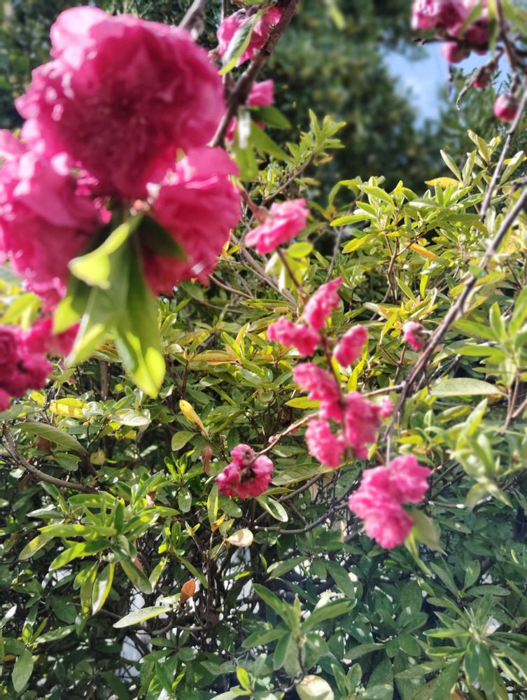 まっすぐ伸びている花桃は公園で咲いてますが‥