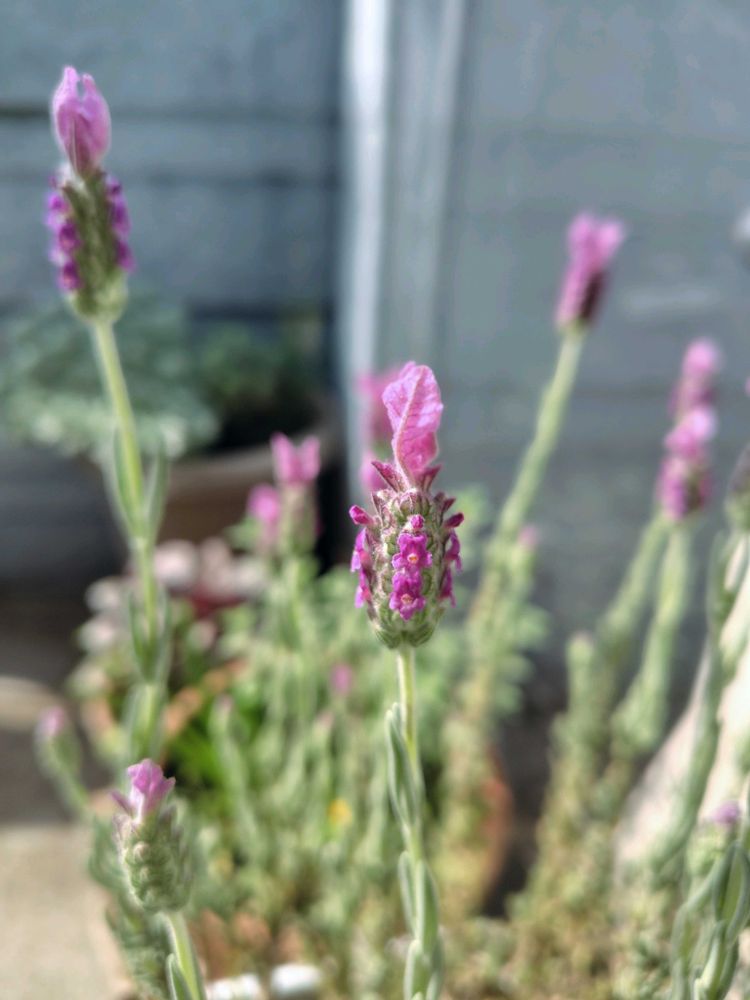 ①…バルコニーのフレンチラベンダーの耳が伸びてきました✨🐰☺️🩷