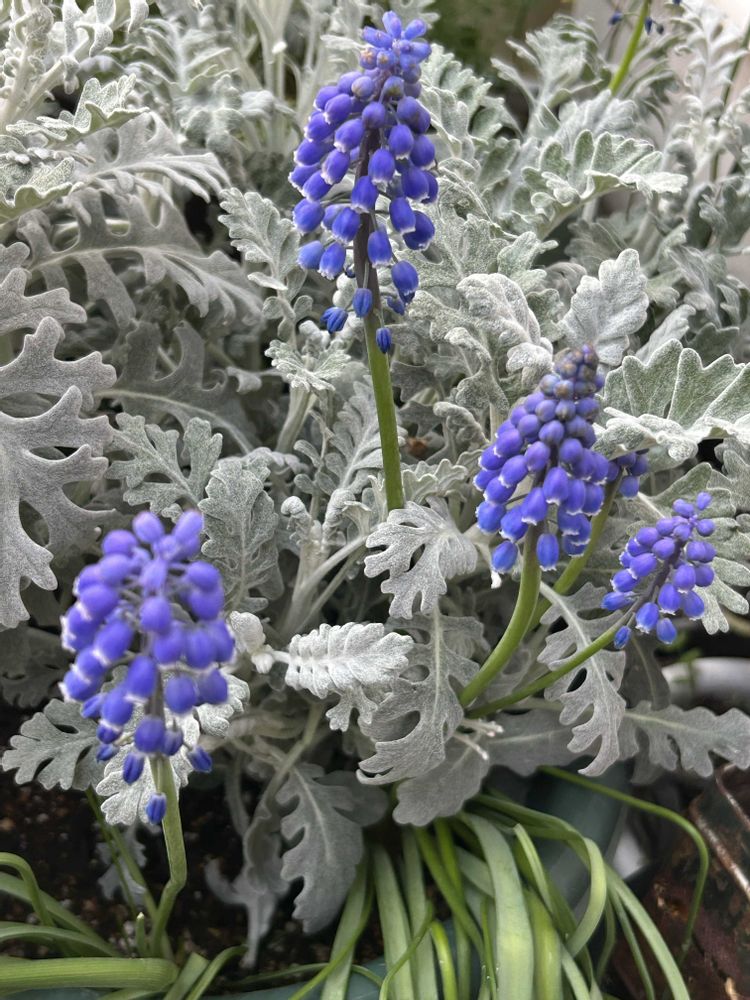 シロタエギク,シロタエギク,ムスカリの投稿画像
